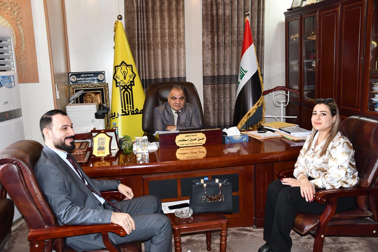 Professor Dr. Hassan Hussein Ibrahim, Assistant President of the University for Scientific Affairs, received two graduate students from the Syrian Arab Republic as part of the “Study in Iraq” program, which aims to strengthen academic cooperation and scientific exchange between Iraqi and Arab universities.