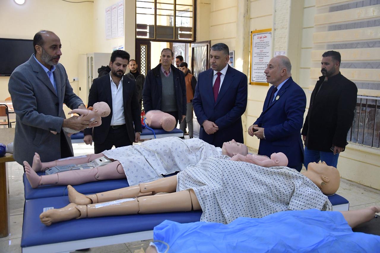 He was received by the Dean of the College of Nursing, Professor Dr. Abdulrahman Jihad Mansour, who provided a brief explanation of the current state of work at the college and its needs.