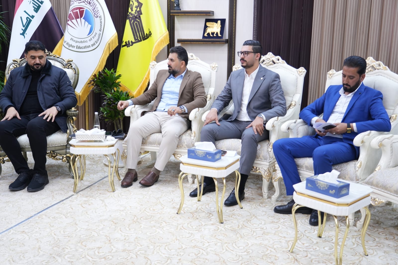 Tikrit University received today a delegation from the ministerial team affiliated with the Office of the Minister of Higher Education and Scientific Research / University Monitoring Department. The delegation was welcomed by the President of the University, Prof. Dr. Waad Mahmood Raouf, in the presence of Assistant Lecturer Qusay Mahdi Saleh, Assistant Director of the Monitoring Department at Tikrit University.