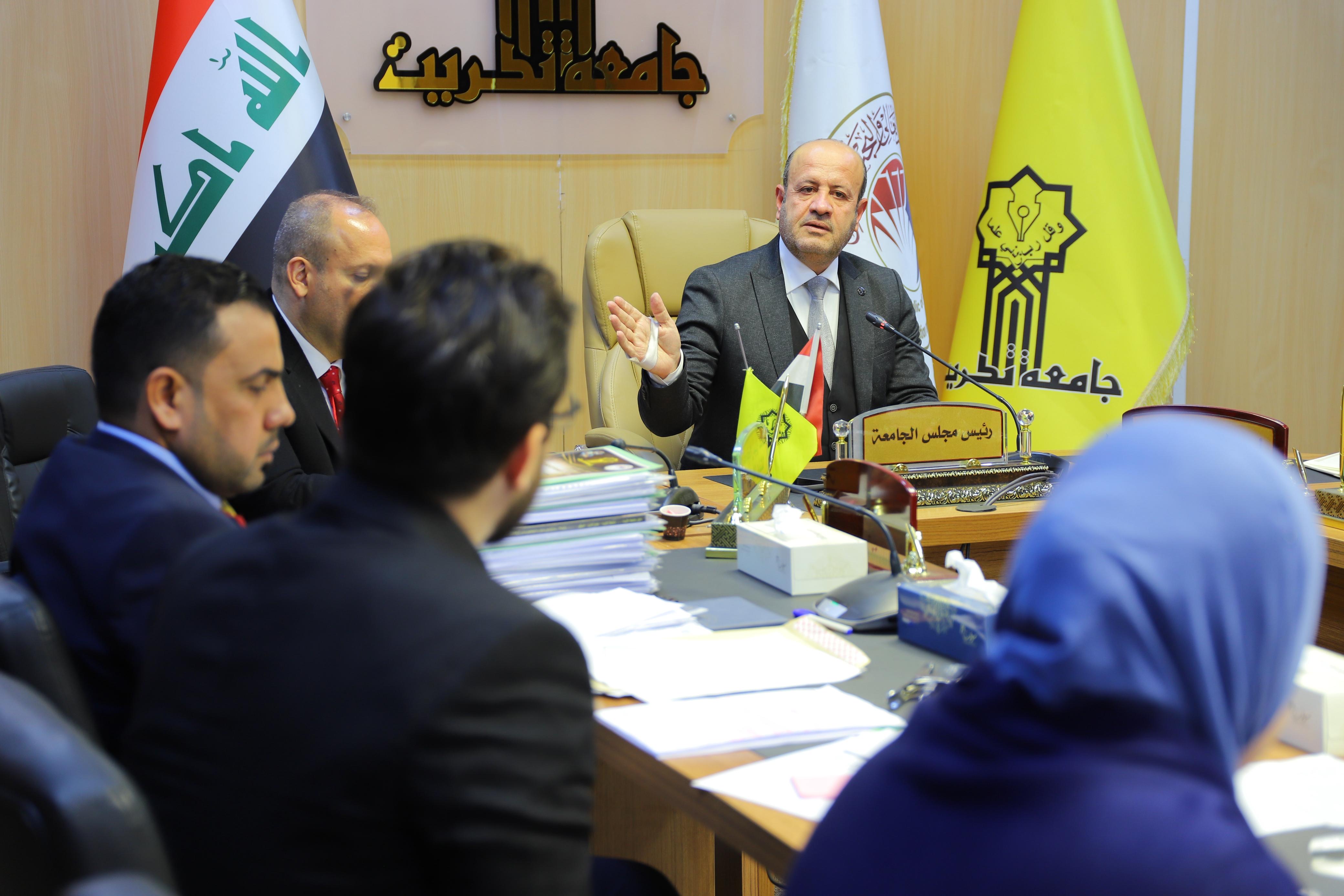 The President of Tikrit University, Professor Dr. Waad Mahmoud Raouf, met on Monday with the members of the Central Committee for Evaluating Institutional Accreditation Reports at the University Presidency, as part of ongoing follow-up on institutional accreditation procedures and the assessment of the level of progress achieved in the university’s colleges and centers.
