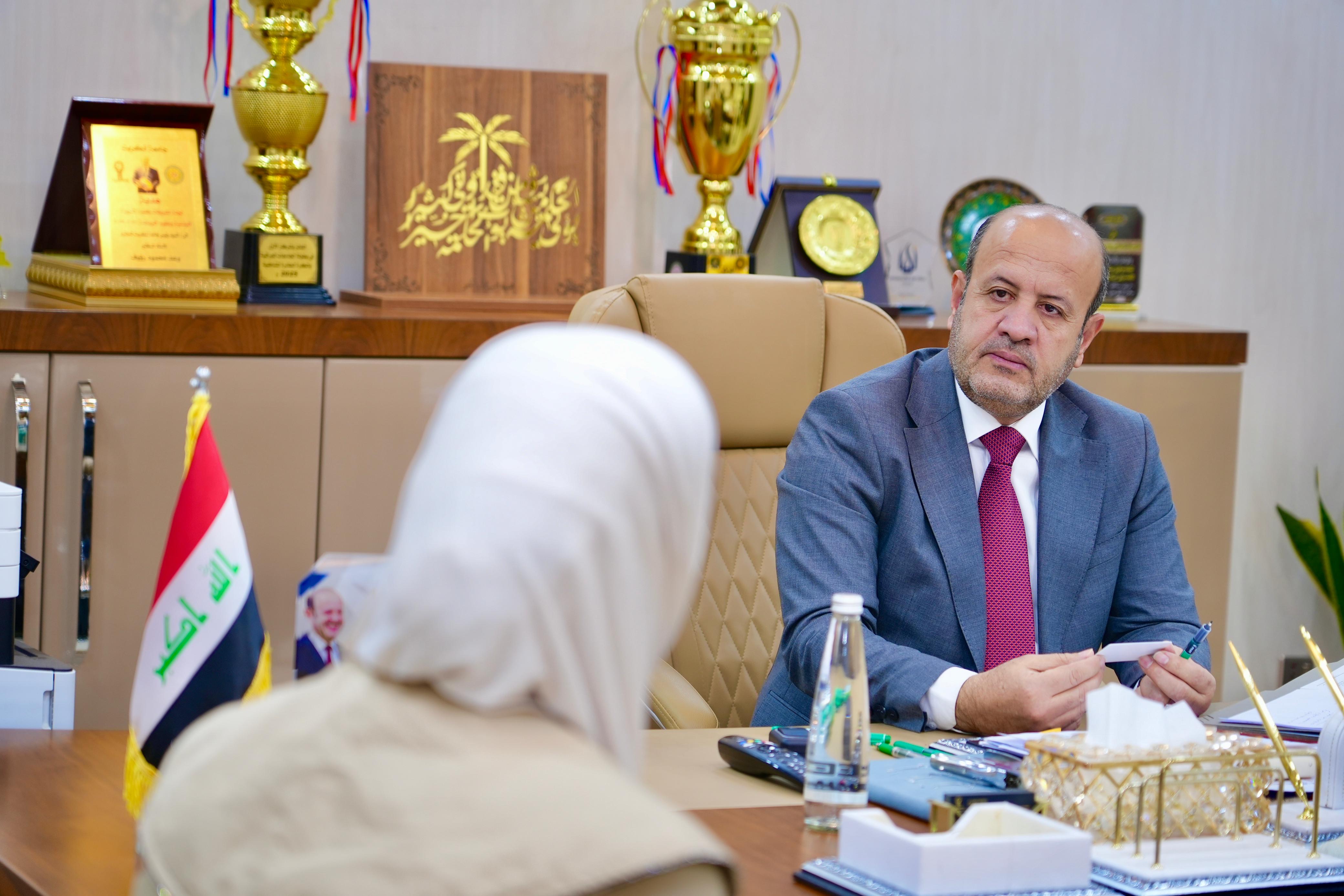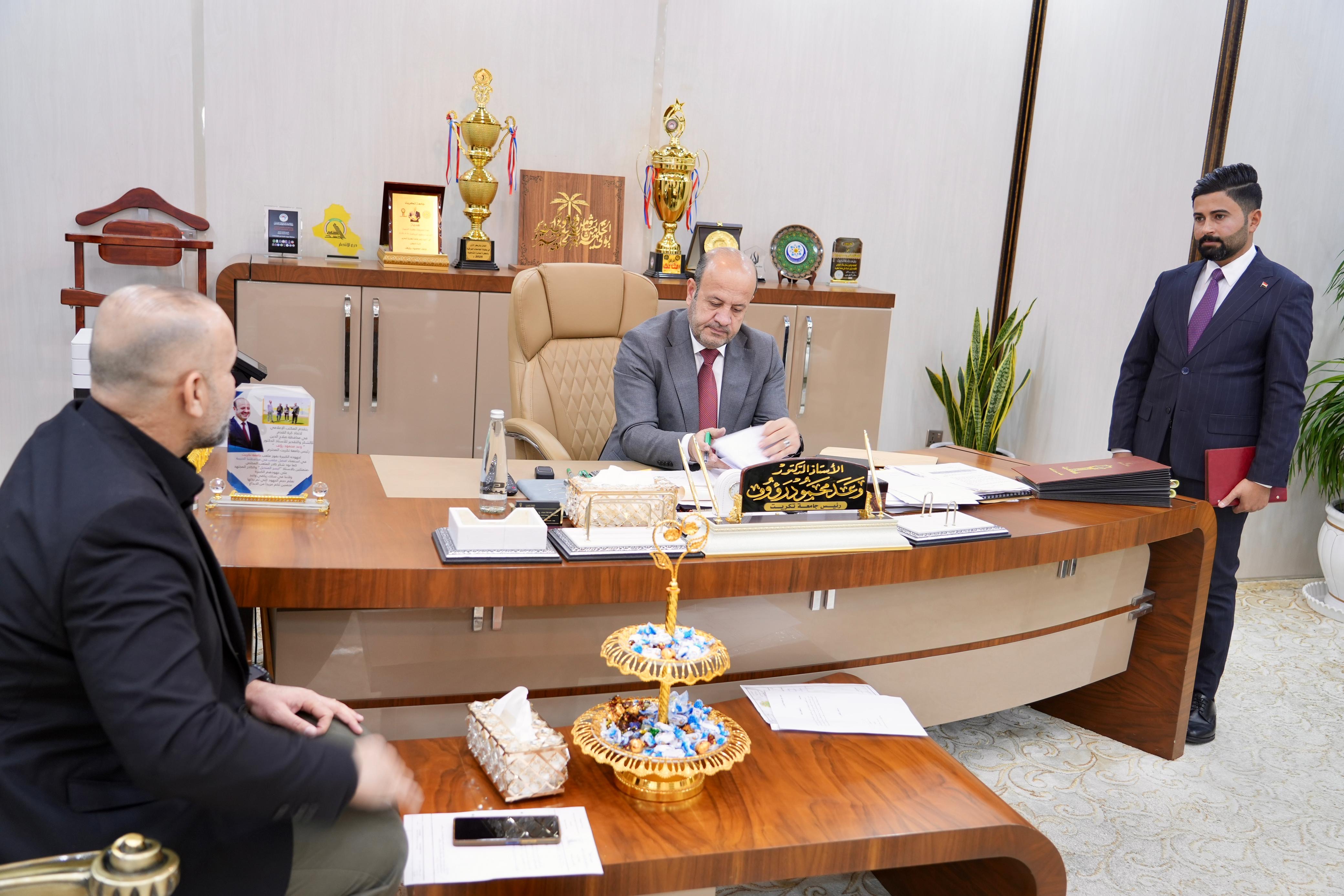 The President of Tikrit University, Professor Dr. Waad Mahmoud Raouf, received today, Tuesday, November 25, 2025, in his official office at the University Presidency building, a number of citizens, university employees, and students, as part of his weekly meeting program organized by the Citizens Affairs Division.
