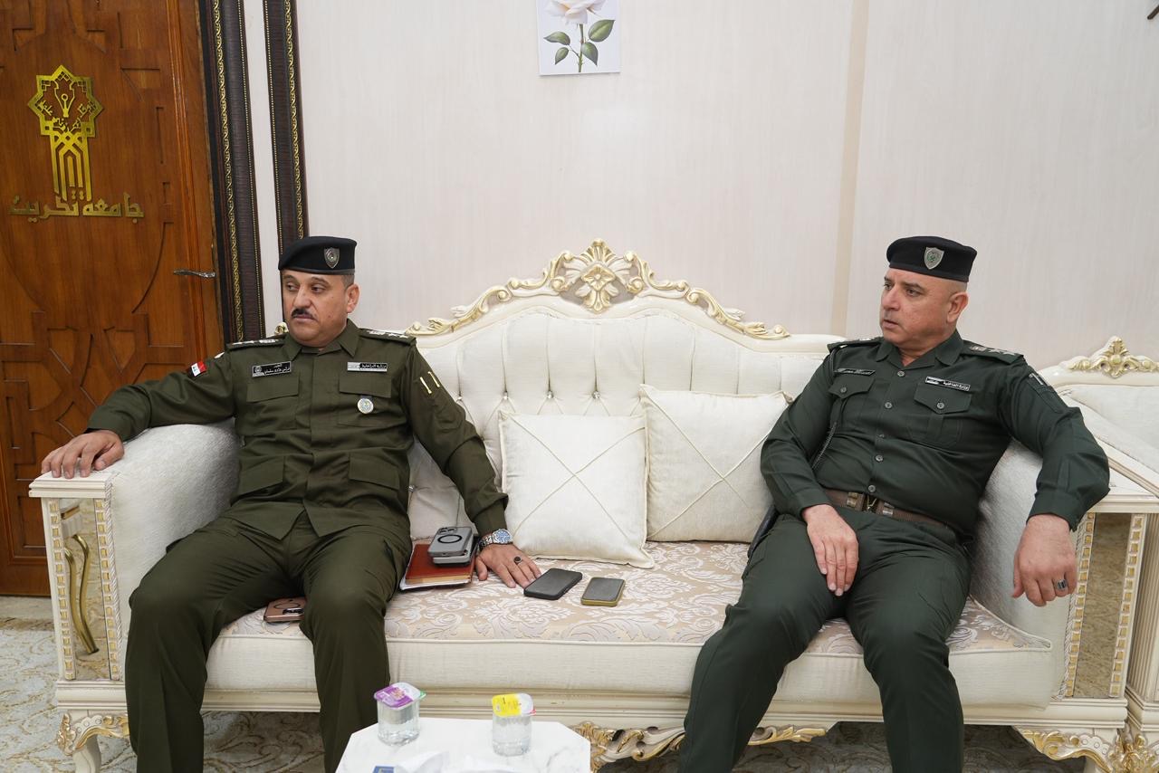 The meeting discussed ways to enhance cooperation and coordination between Tikrit University and the Salahuddin Police Command to help create a safe and stable university environment that supports the educational and research processes. The two sides also reviewed mechanisms for implementing joint programs in the areas of security awareness and combating negative behaviors within the university community, through organizing seminars and educational workshops for students and staff.