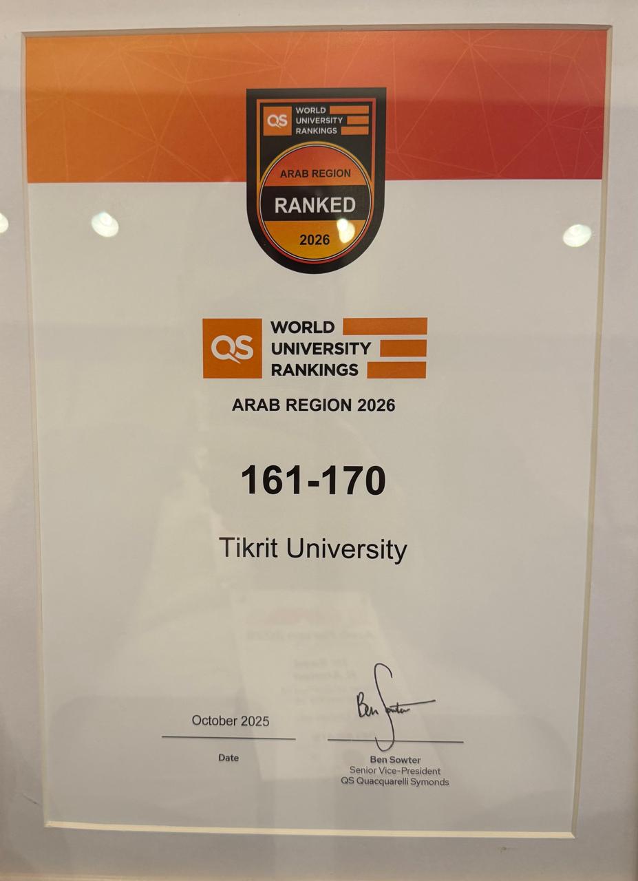 Tikrit University reaffirmed its commitment to continuing efforts to improve the quality of education and scientific research, and to strive for higher positions in regional and global rankings in the coming years.