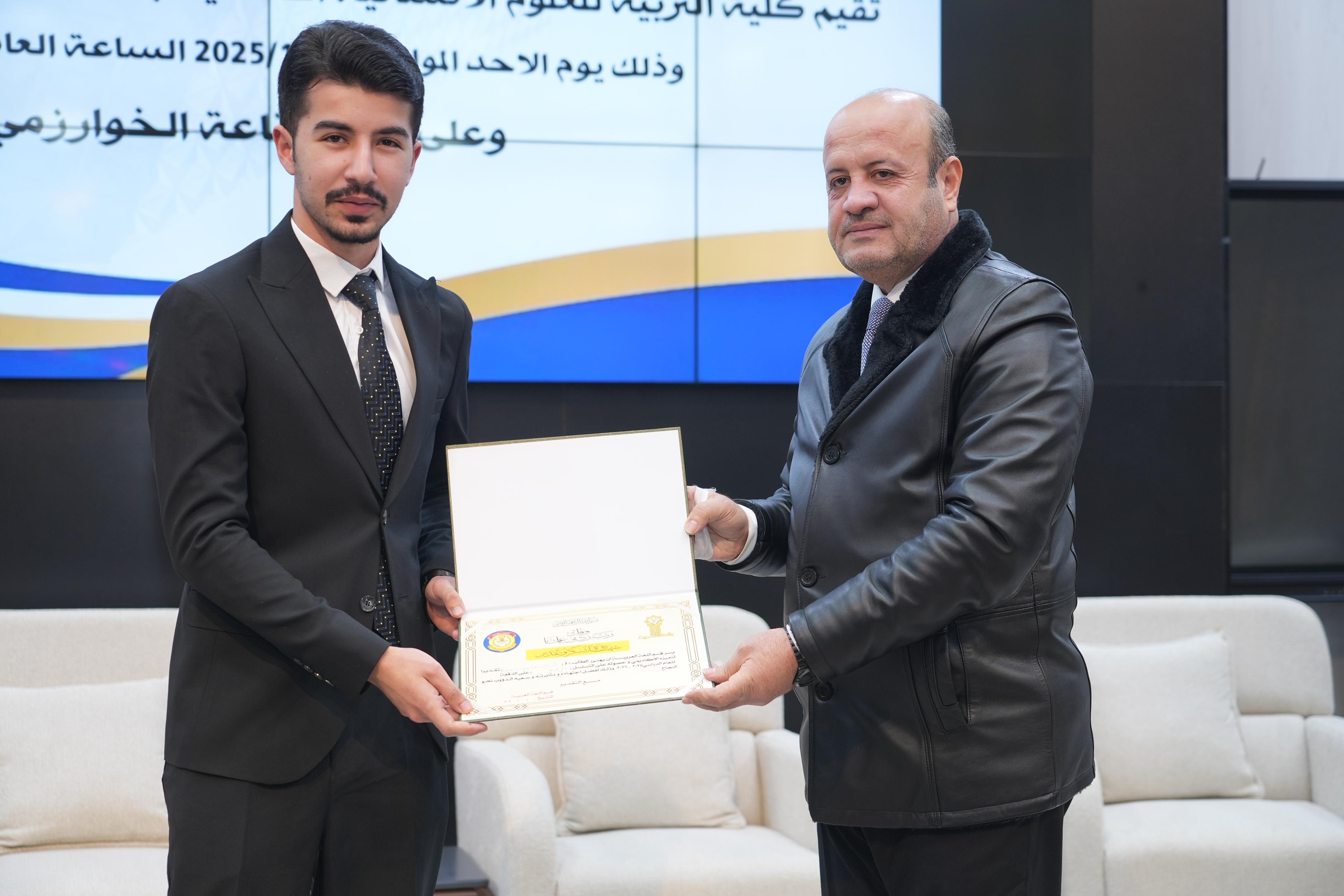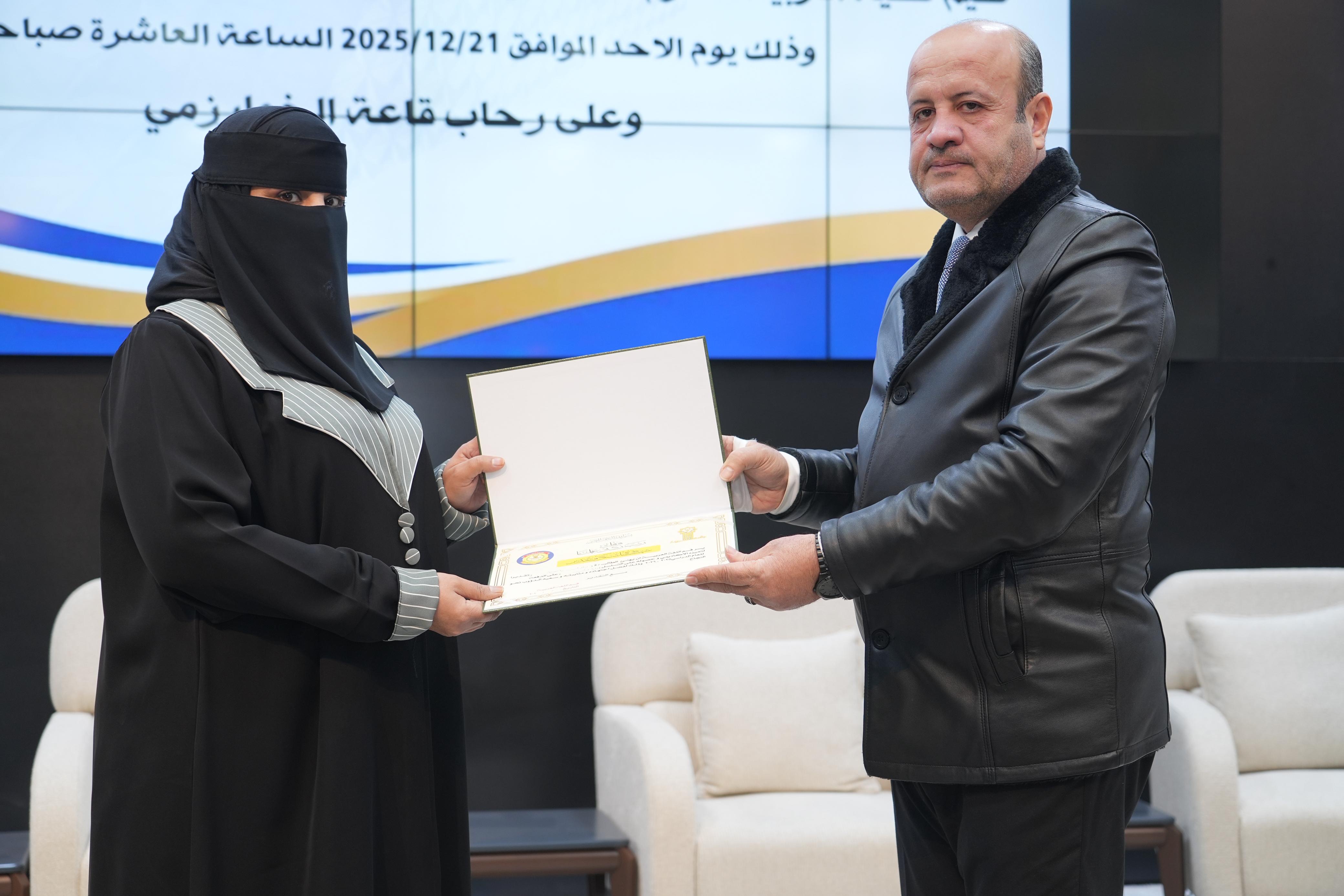 At the conclusion of the ceremony, the President of Tikrit University honored the top students of the Arabic Language Department by awarding them certificates of appreciation in recognition of their academic excellence and as encouragement to continue their academic and linguistic journey.