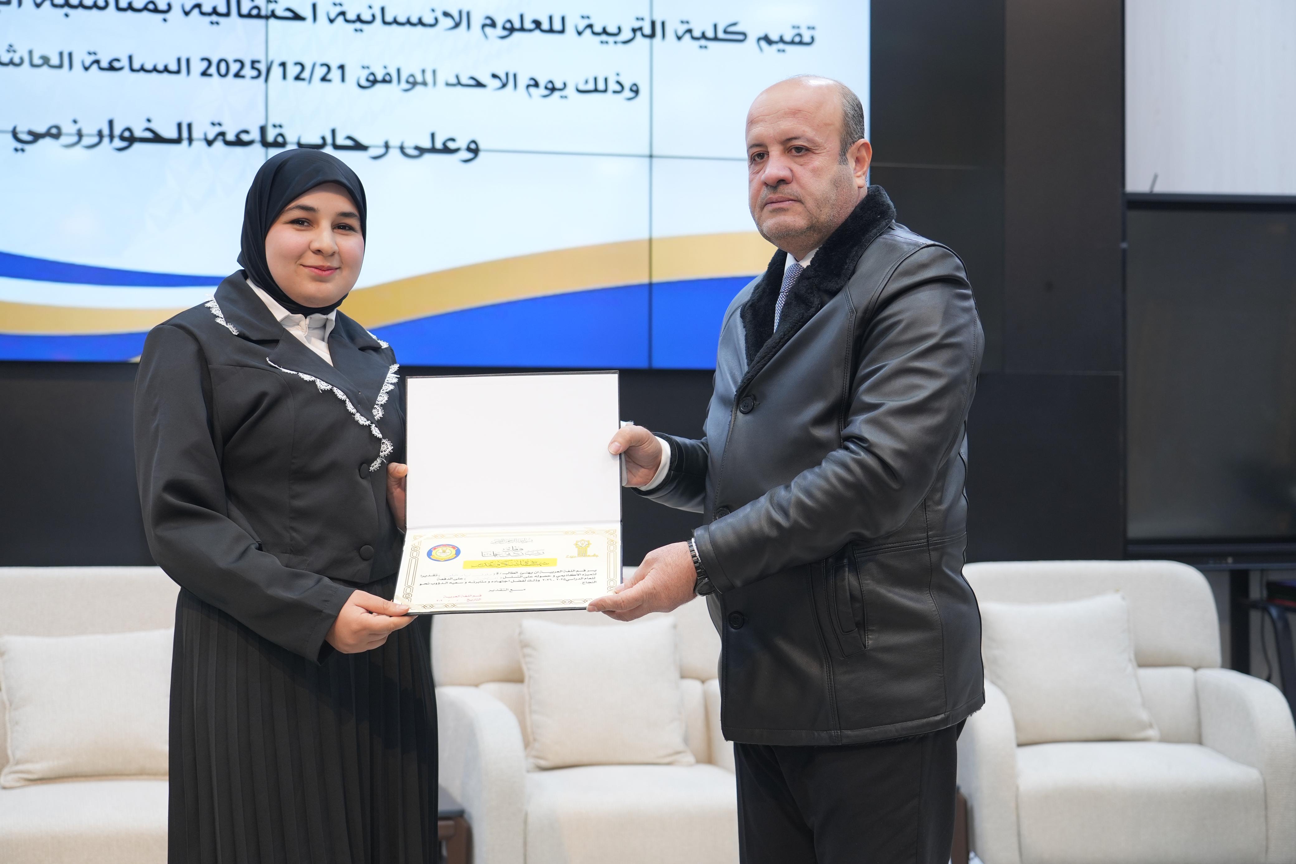 Under the patronage and in the presence of Professor Dr. Waad Mahmoud Raouf, President of Tikrit University, and under the supervision of Professor Dr. Imad Hamid Ahmed, Dean of the College of Education for Human Sciences, the College of Education for Human Sciences held a celebratory event on Sunday, 21/12/2025, at Al-Khwarizmi Hall, marking World Arabic Language Day under the slogan “Our Language Is a Renewed Identity.”
