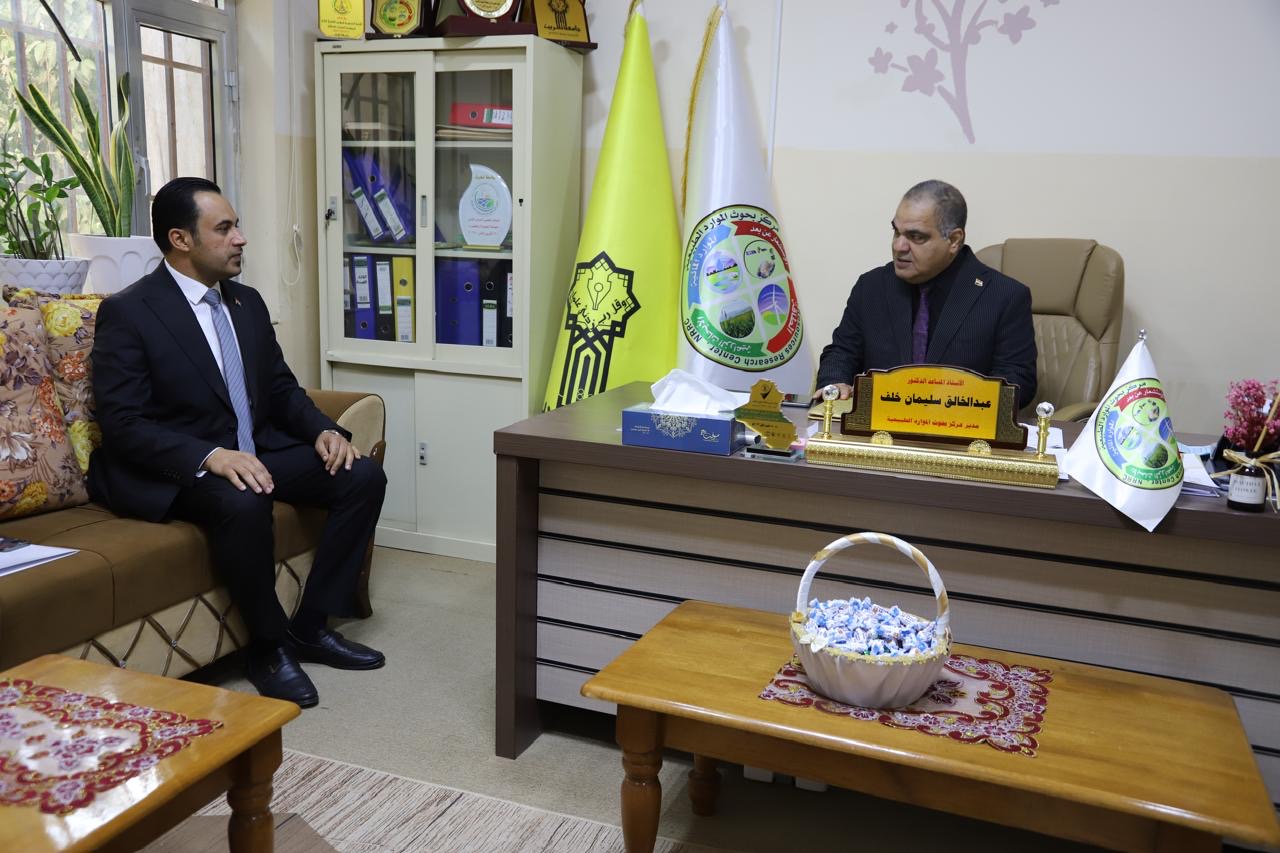 As part of his tour, the Assistant President of the University for Scientific Affairs also visited the Natural Resources Research Center, where he was received by the Center’s Director, Dr. Abdulkhalek Suleiman Khalaf. He was briefed on the progress of work in the research divisions and the center’s strategic plans.