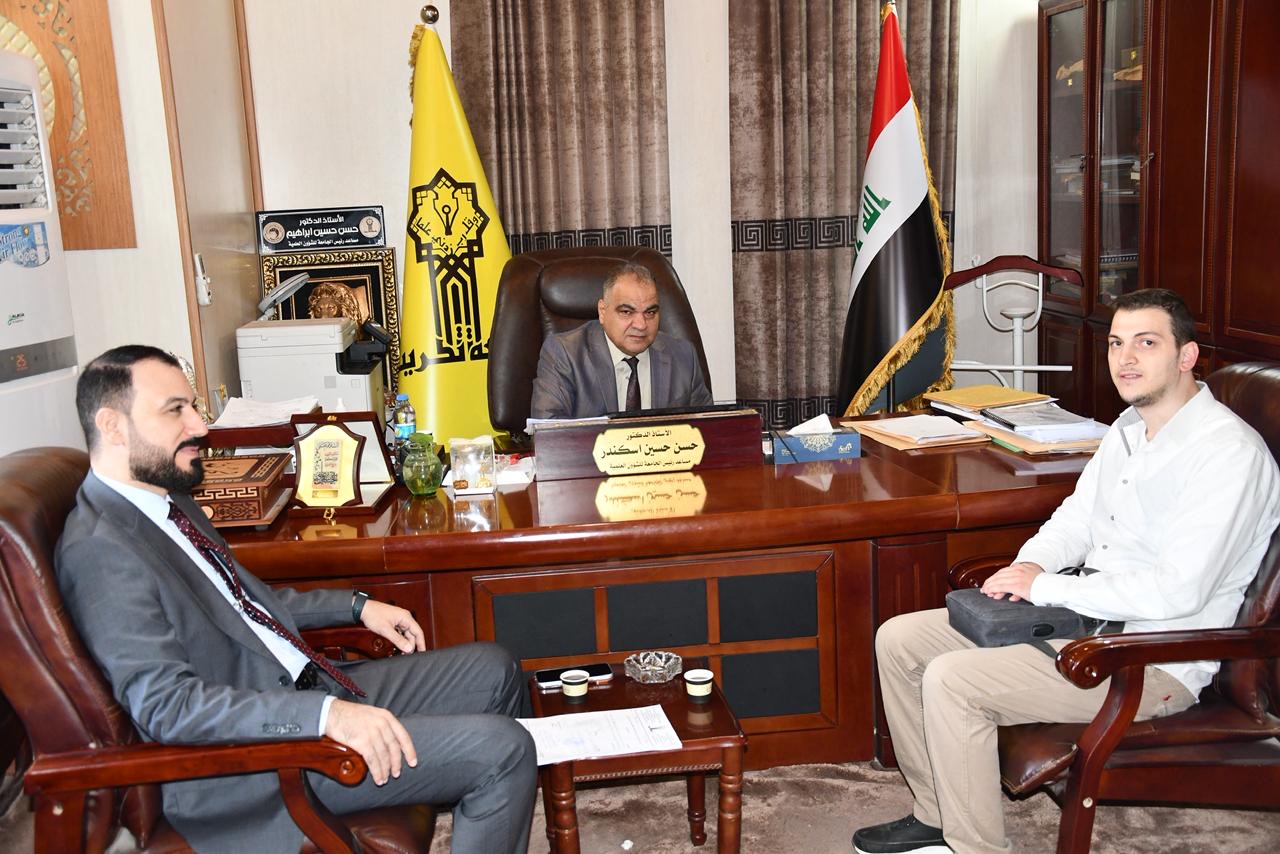 Professor Dr. Hassan Hussein Ibrahim, Assistant President of the University for Scientific Affairs, received two graduate students from the Syrian Arab Republic as part of the “Study in Iraq” program, which aims to strengthen academic cooperation and scientific exchange between Iraqi and Arab universities.