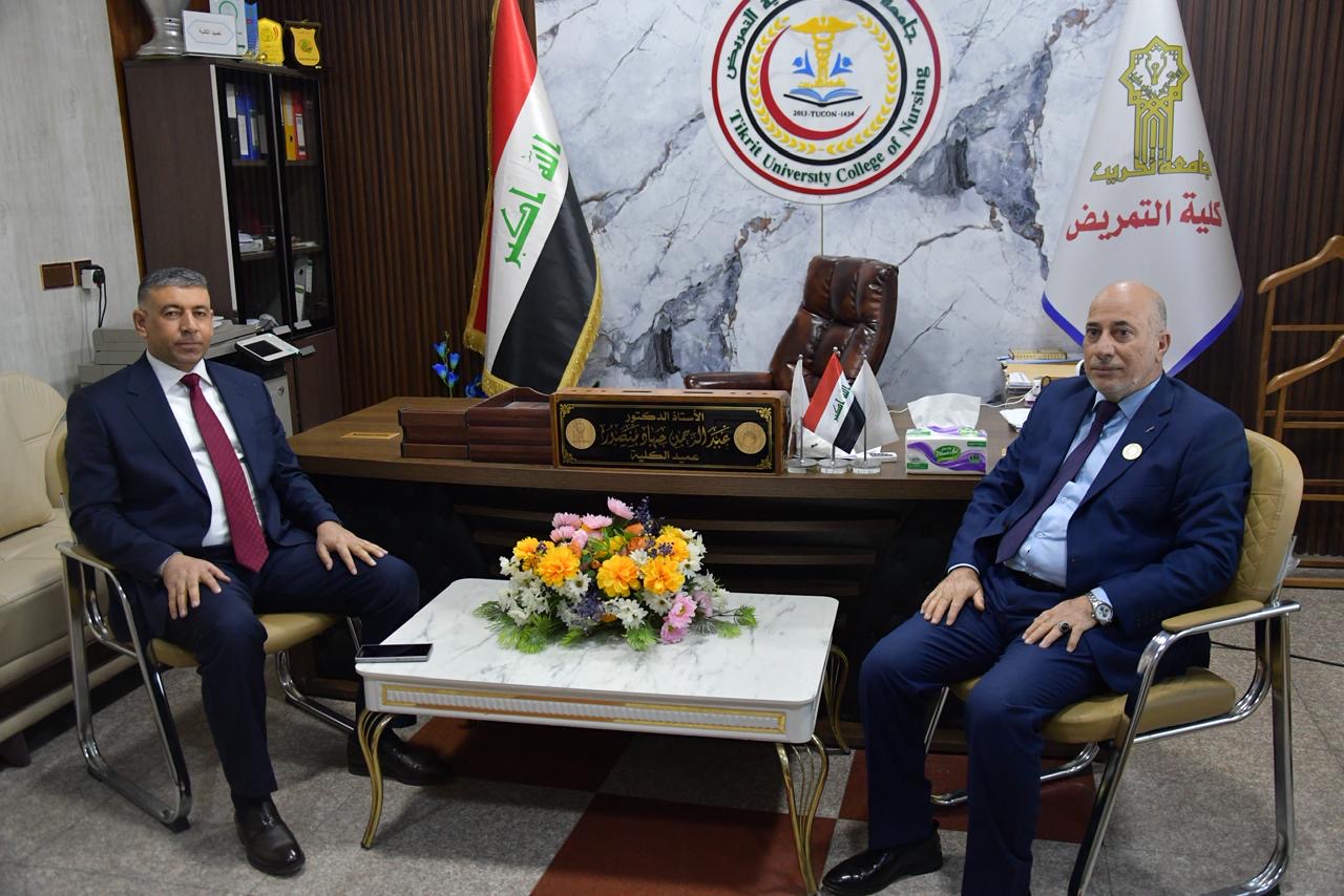 He was received by the Dean of the College of Nursing, Professor Dr. Abdulrahman Jihad Mansour, who provided a brief explanation of the current state of work at the college and its needs.