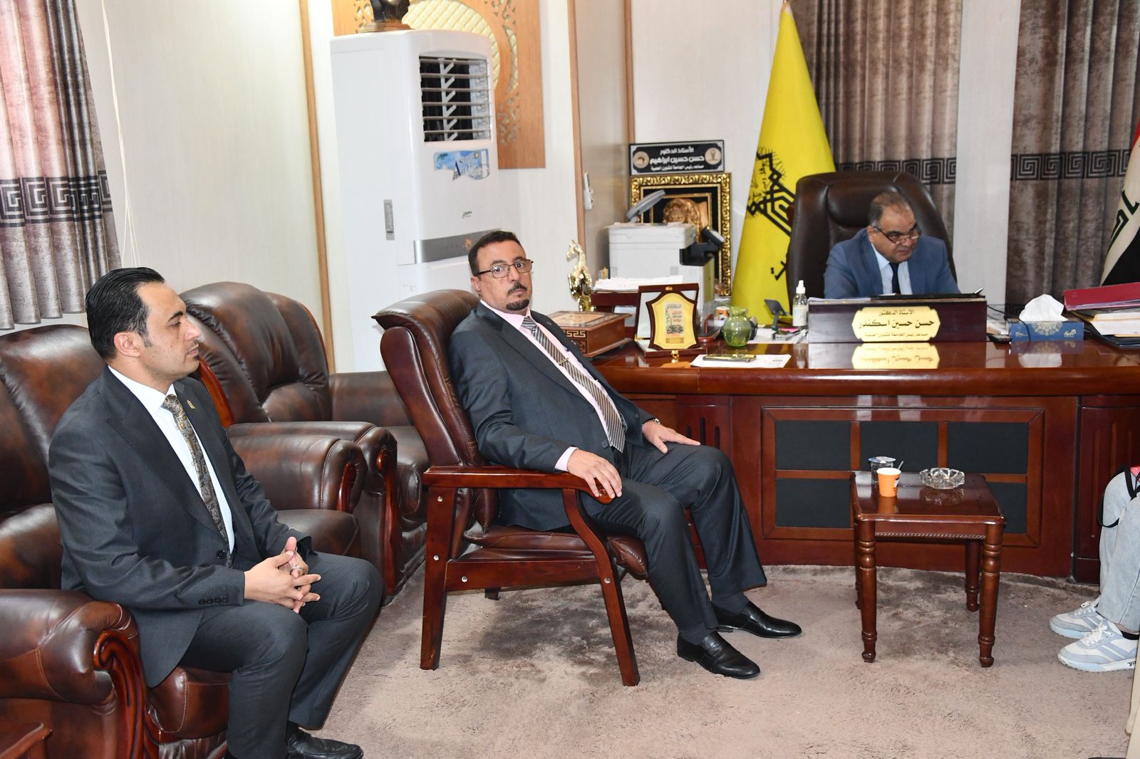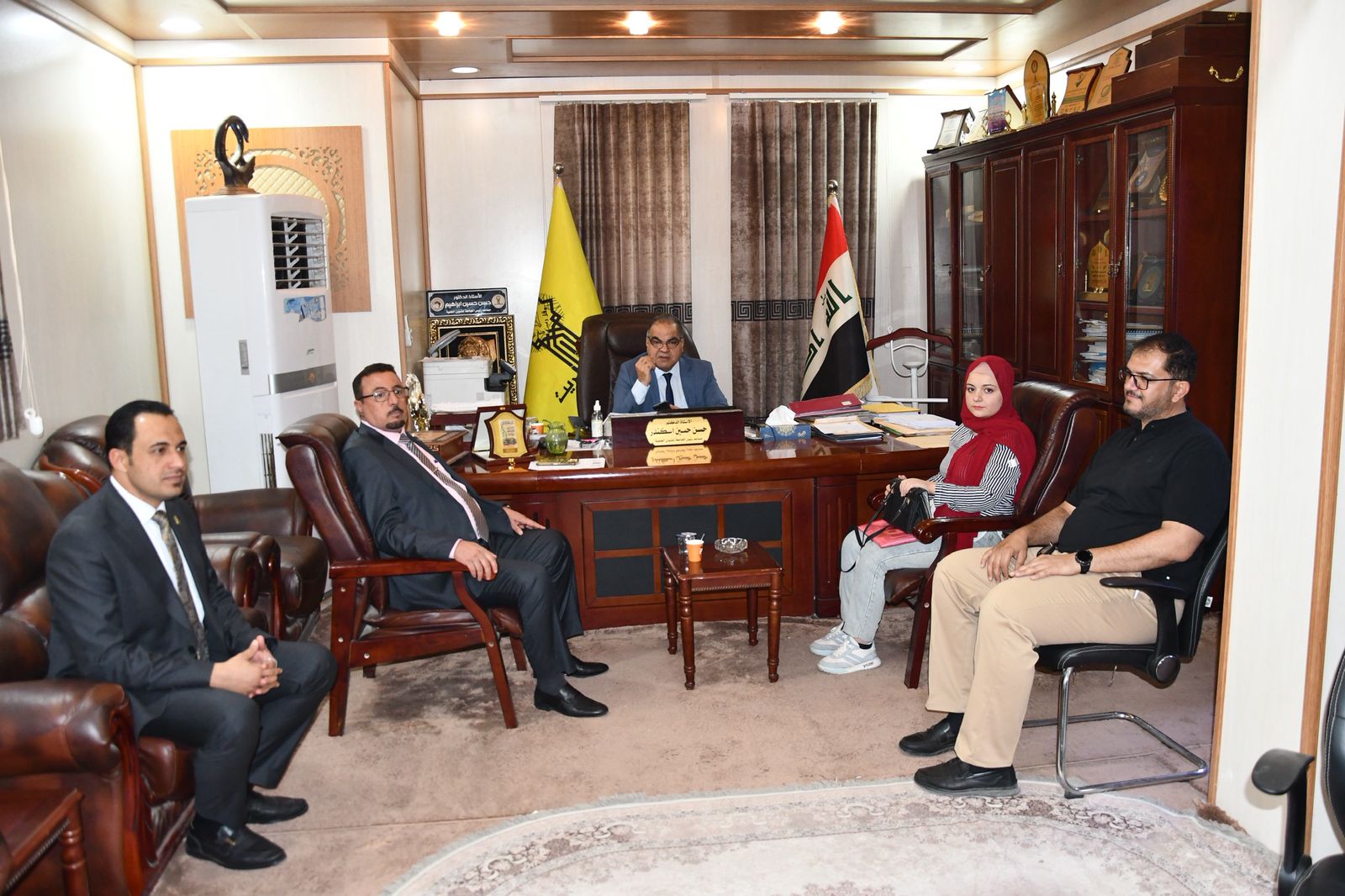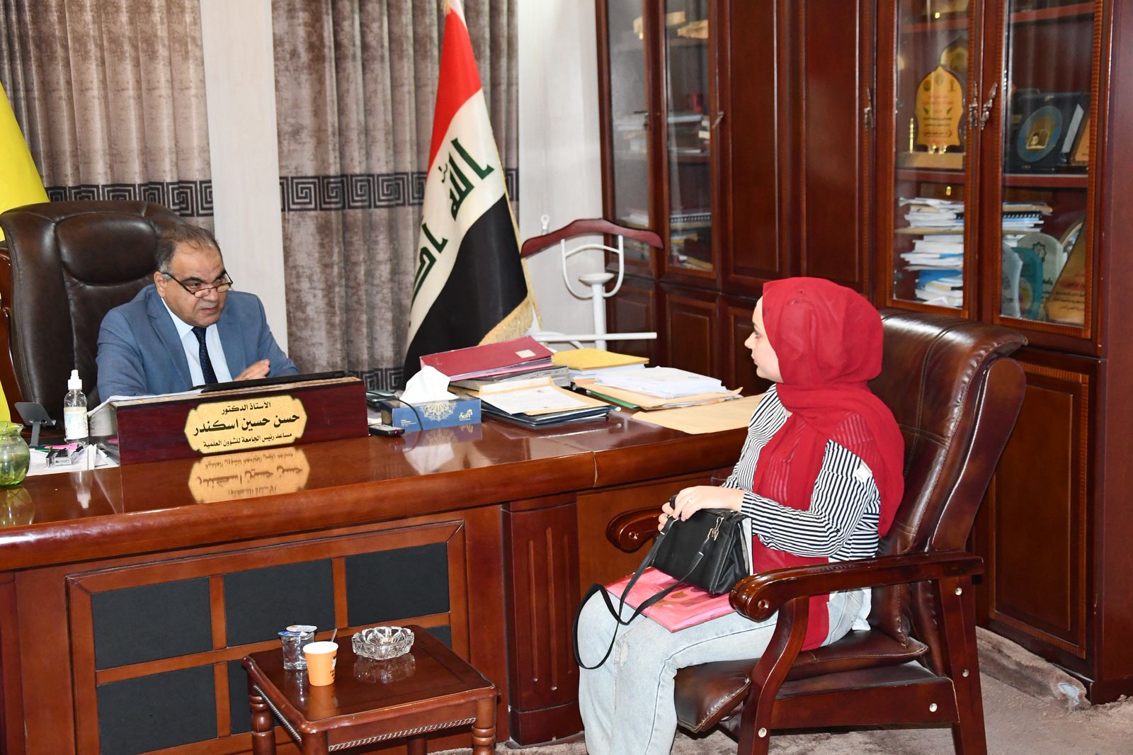 Professor Dr. Hassan Hussein Ibrahim, Assistant President of Tikrit University for Scientific Affairs, received in his office the Syrian student Hala Khudr Al-Ali, who has been admitted to the College of Medicine under the “Study in Iraq” program. The meeting was attended by Professor Dr. Muthanna Ahmed Wakkaa, Director of the Department of Graduate Studies, and Dr. Abdulkhaliq Suleiman, Director of the Department of Scholarships and Cultural Relations