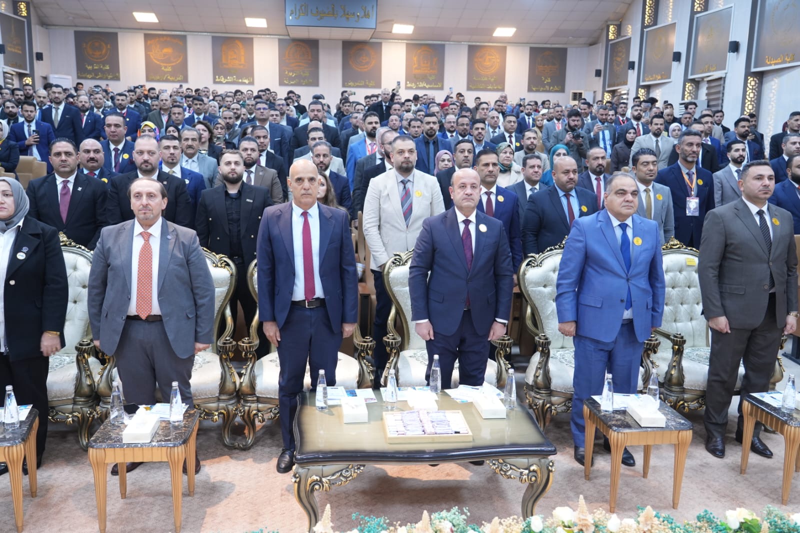 The opening session began with the recitation of verses from the Holy Qur’an, followed by the playing of the Iraqi national anthem and the anthem of Tikrit University. The President of the University, Professor Dr. Waad Mahmoud Raouf, then delivered his speech, in which he emphasized the importance of administrative and financial reform in light of digital transformation and financial inclusion. He noted that universities are no longer limited to a theoretical role, but have become active partners in shaping public policies and supporting the national economy.