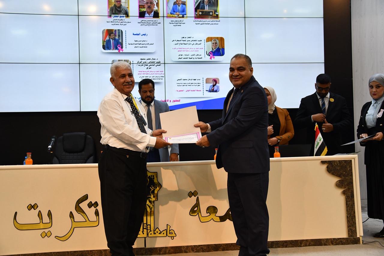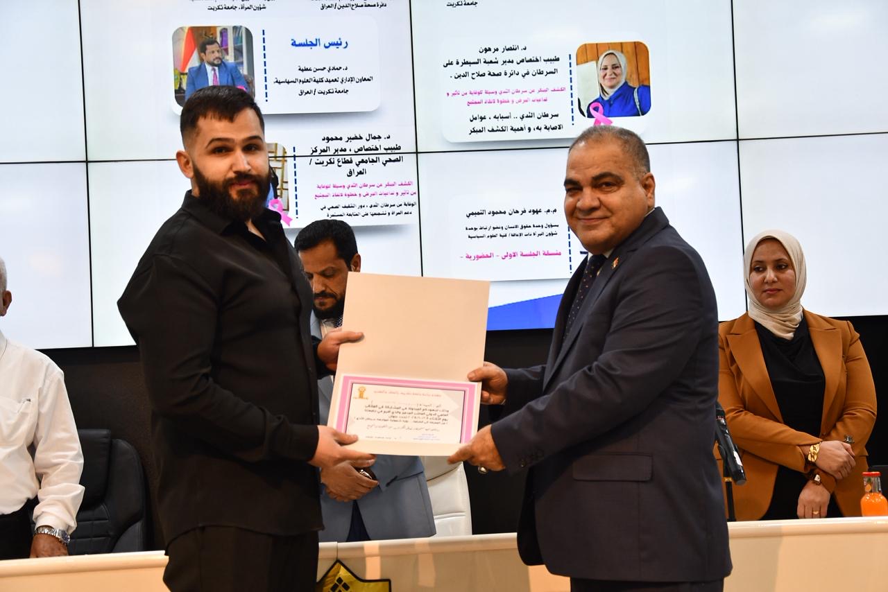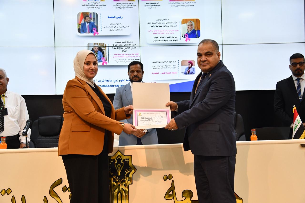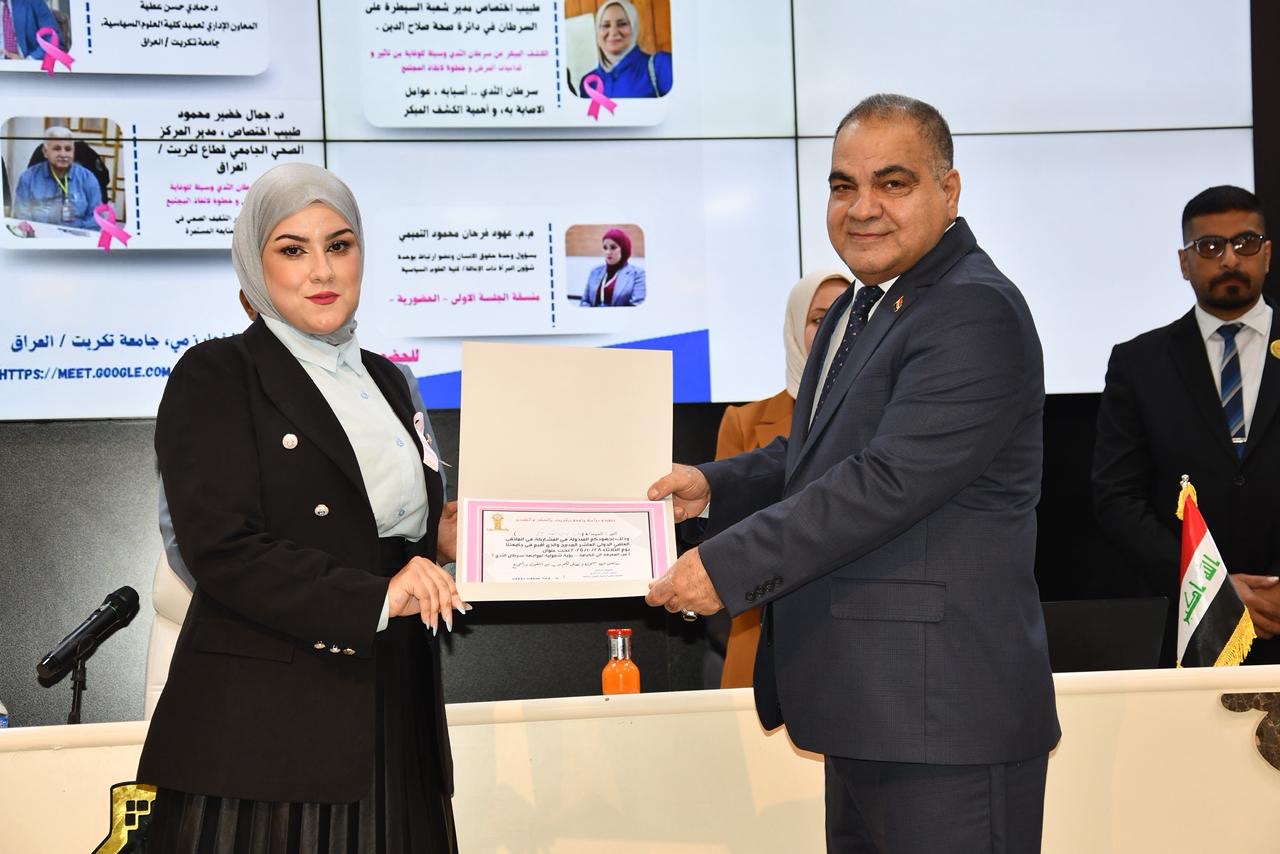 Representing the University President, the Assistant for Scientific Affairs emphasized that Tikrit University prioritizes serving humanity and promoting health awareness, praising the national and international efforts that unite to combat breast cancer and support patients and survivors psychologically and socially.