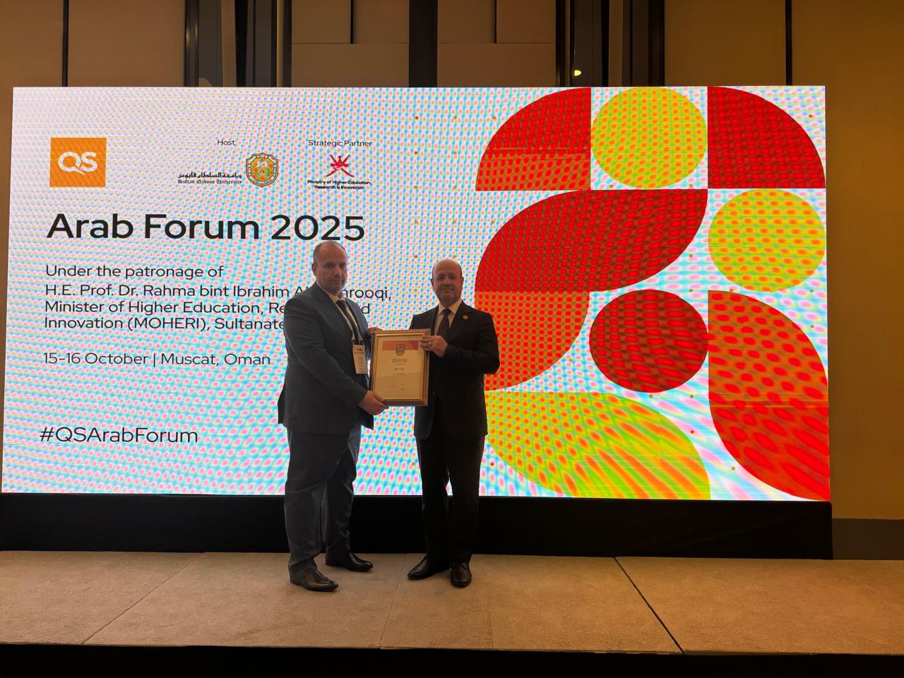 During the official ceremony for the release of the rankings in Muscat, the University President received a certificate of recognition marking this advancement, in a celebratory atmosphere attended by representatives of top Arab universities and global ranking experts.