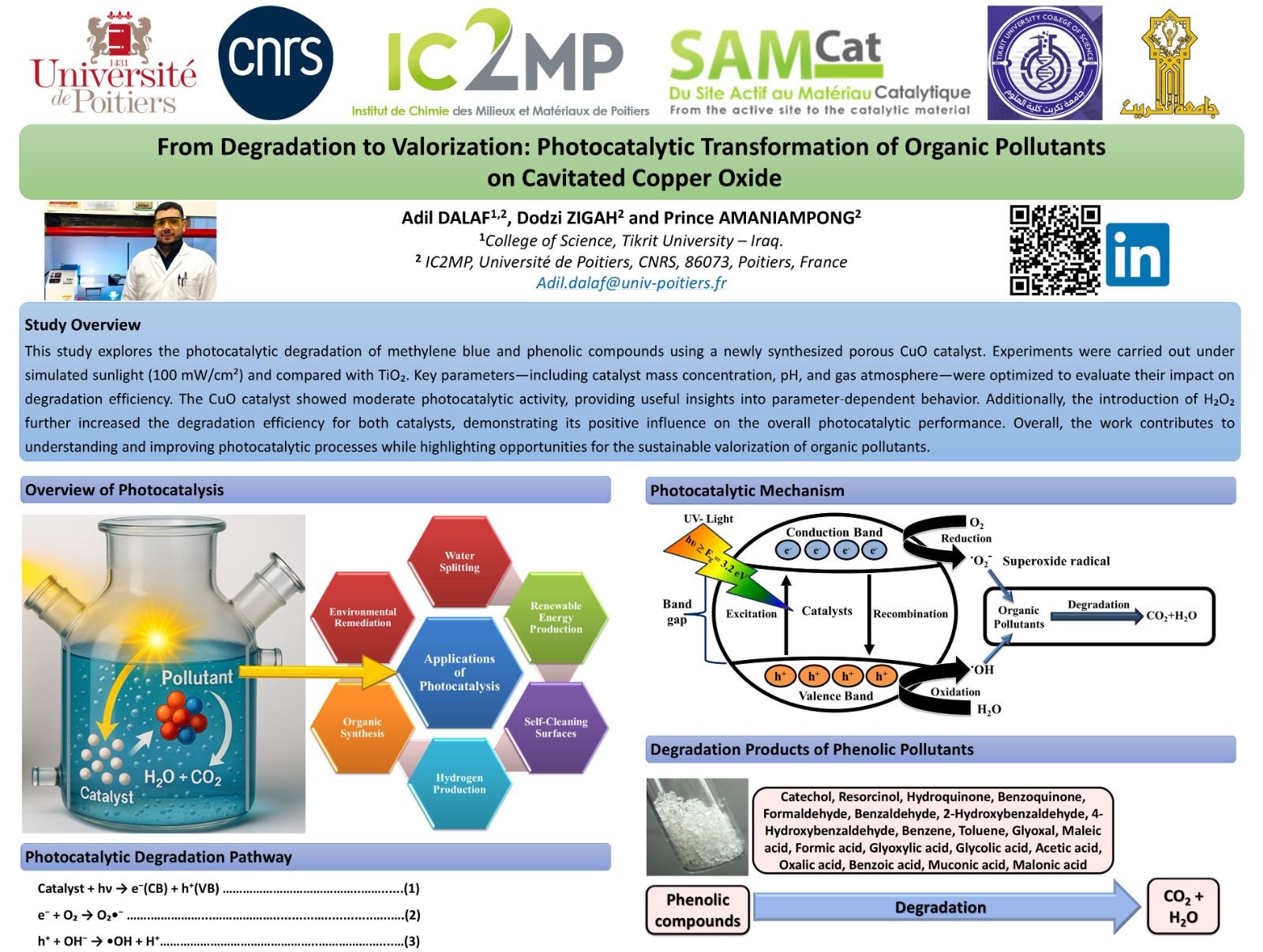 received wide attention from participants due to its advanced scientific approach, which combines the treatment of hazardous environmental pollutants with their conversion into industrial compounds of added value. Attendees commended the importance of the applied study, particularly its focus on toxic phenolic compounds, which are among the most challenging organic pollutants to treat using conventional methods.