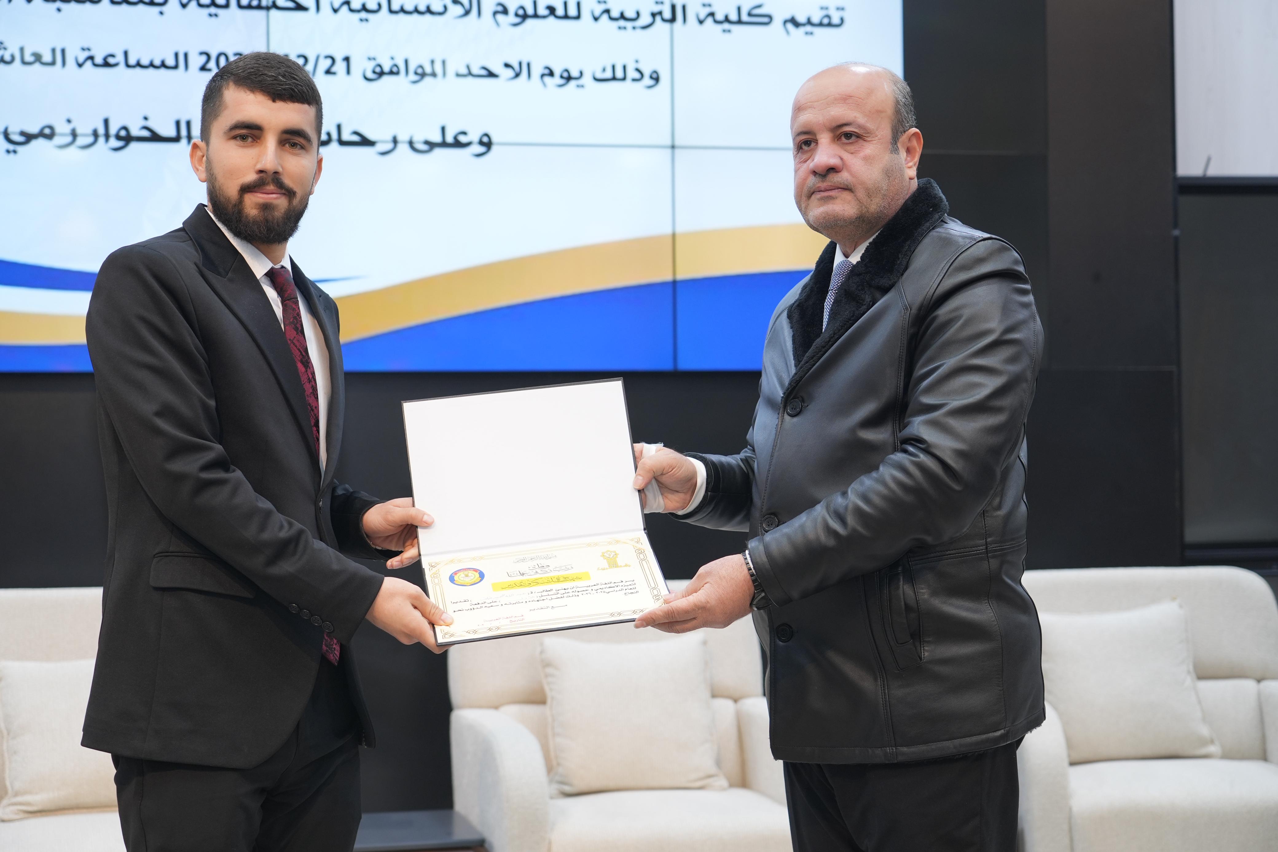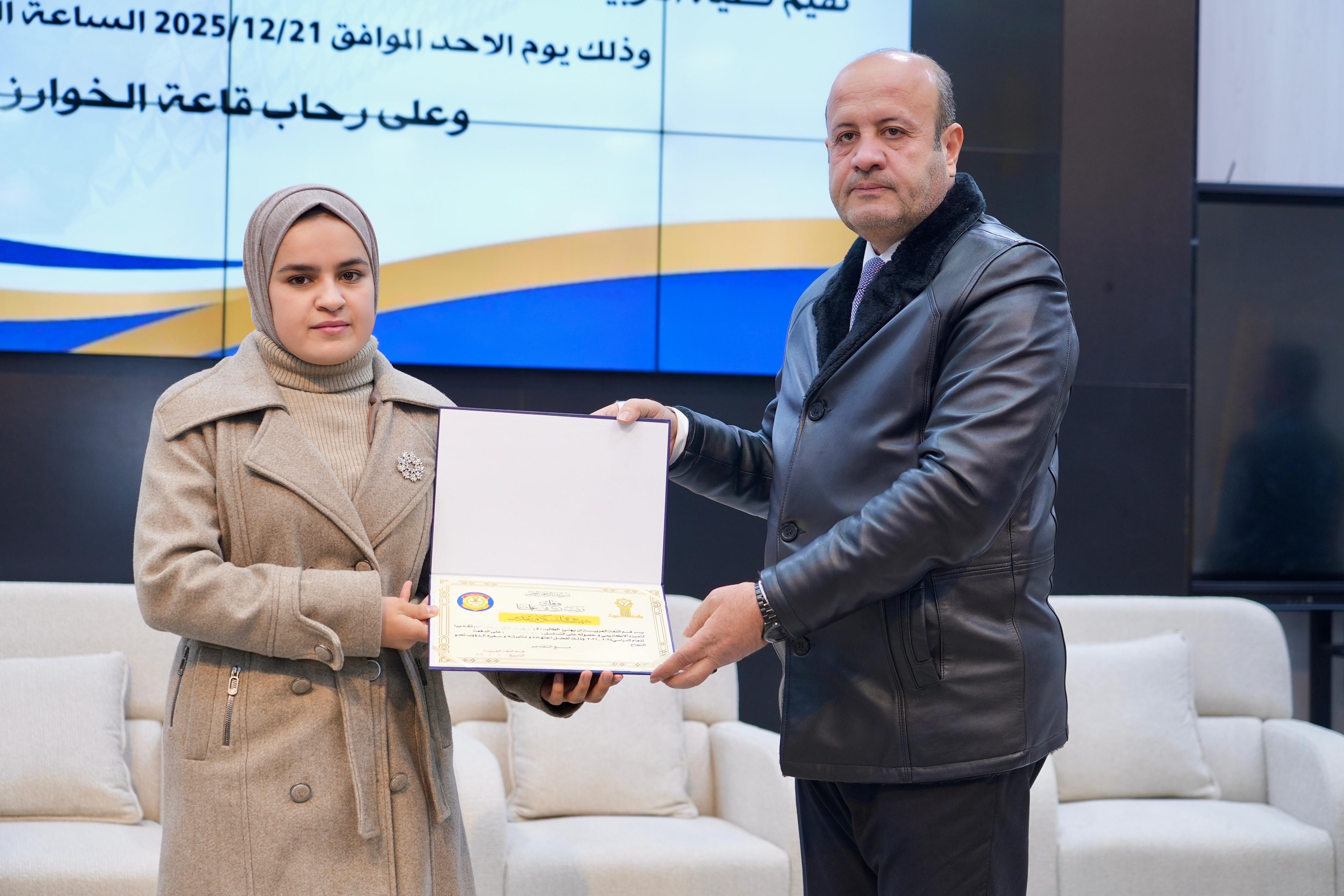 At the conclusion of the ceremony, the President of Tikrit University honored the top students of the Arabic Language Department by awarding them certificates of appreciation in recognition of their academic excellence and as encouragement to continue their academic and linguistic journey.